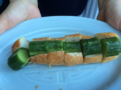 右:これが噂の漬物ドッグ(写真取る前に切られちゃったーー)