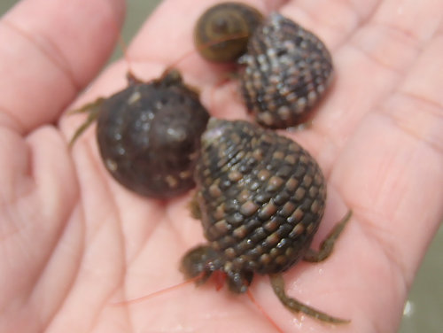 左:ヤドカリいっぱい