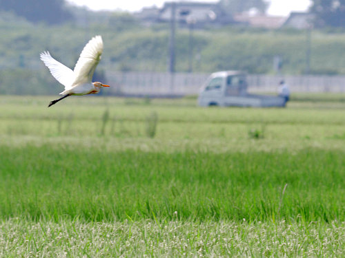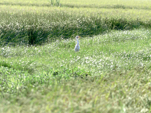 汚いサギだと思ったらアマサギでした(笑)幼鳥なのでしょうか?色がまだらです。