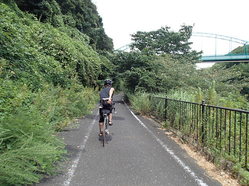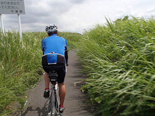 ここから成田方面に向かうので、CRを走りますが、久しぶりの新川CR??は草茫々です。背の高さ以上に育っているので、走っていると暑い暑い!ちょっと体を起こすと涼しい風がきます。でも、桜並木のあたりは日陰になって快適でした!はんぞうさんのルート選択のお陰で追い風で快走です!