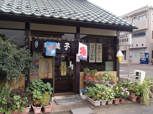 で、登り切った街にある目的地に到着です。和菓子 天名屋さんです。いい感じの店構えですよね。中にテーブルがあって食べさせてくれます。