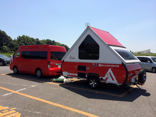 手賀大橋近くの駐車場ではこんな車両がありました。花火鑑賞用?救護班?謎です、、、この日はすっごく暑かったので、目的地までが近いにもかかわらず休憩ばかりしてました。こんな日陰を見つけるとベンチで汗が引くまで休憩です。でも、、汗は出るばかり、、(泣)