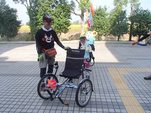 みなさんが集まってきたので、水の館の展望室から降りると、タンデムトライクの方が集合場所に、momoさんですね(久しぶりにご挨拶できました)。今日はたすけさんの大好きなフナッシーデコトライクでしたよ。ご挨拶の後は出発ですが、目的地が近すぎるので少し遠回りをします。