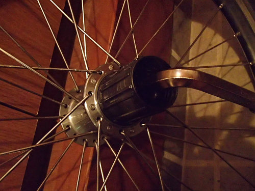 ハブのグリスアップでは、前輪と後輪で使う工具のサイズ(インチ)が違います。クリスピでは前輪用には13と15、後輪用には15と17のレンチを使います(車種によって違います)。2年も放を置していたので、ちょっとヤバイかな?と心配していましたが、後輪側のグリスが少し変色していましたが、全然問題なかったです。今回はフリーも外しておく事にしました。昔、これが固着しかかっていて外せなくて困った覚えがあるのでグリスアップだけはしておきましょう。