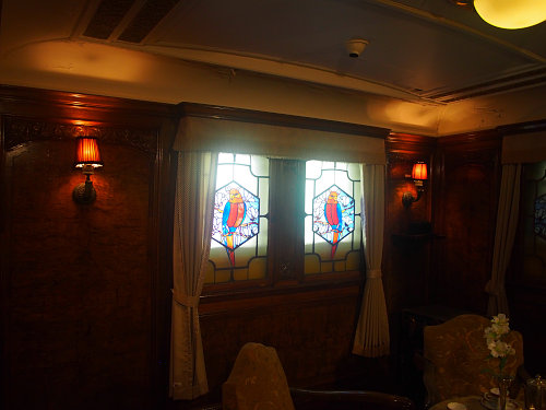 左:豪華な客室、右:操舵室の電話(受けだけ)