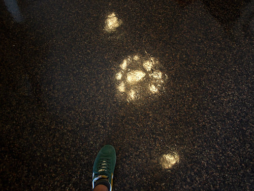 左:ブルータイルがピカピカ、右:ねこの目もピカピカ