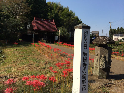 そうです、結縁寺です。曼珠沙華といえば、ここと持法院ですが、持法院は本堂がまだ再建中という事で、今年は結縁寺にしました。