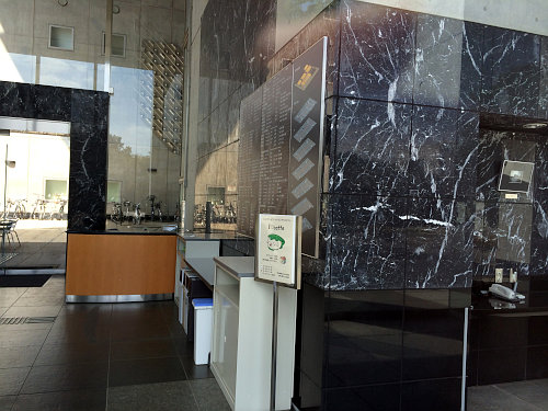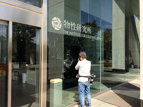 実は会場へ向かう途中で「東大の物性研究所」と「カブリ数物連携宇宙研究機構」に寄ってきました。こちらは物性研究所ですが、すっごくカッコイイ建物ですね。入り口はセルフサービスの喫茶スポットとして公開しているようですので、気軽に立ち寄ってもいいですね。東大生気分??