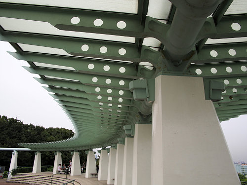 この後、ちょっと懐かしい「港の見える丘公園」に行きますが、激坂を16インチで必死に登りますが、もう、死にそうです(笑)。全員、18インチ以下だし、息が整わないままで、レインボーブリッジを確認します。レインボーブリッジより、この構造が、先程の階段と同じ構造だったので、驚きです。さすが船の技術だ!