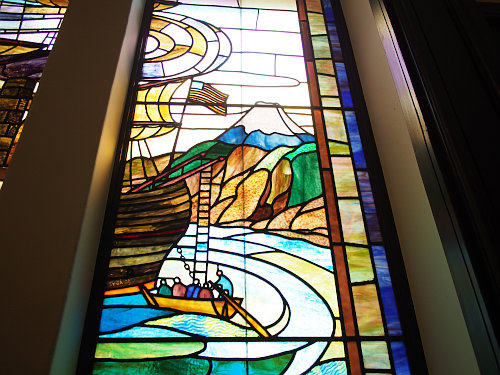 第一目的地の「横浜開港記念館」もレンガ造りの建物です。横浜には等が3つあるらしく、そのうちの1つであるジャックです。外観はこんな感じでカッコイイですが、内側は節約の為に質素でレンガではありませんでした。でも、富士山のステンドグラスやシャンデリア(床に写ってる)、渡り廊下や時計塔であるジャックへの階段などは見応えがありましたよ。