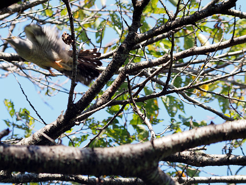 じゃ、じゃーん。ツツドリです。ずっと探していたのに、全然、見つけられなかったのですが、こんなに近い所で会うことができました。