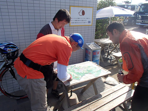 瞬間的に空気が抜けたので愚兵衛さんの後輪はペッタンコです。バーストを疑いましたが、みんなでタイヤを確認したけど、タイヤは大丈夫そうなので、チューブを交換して再出発!