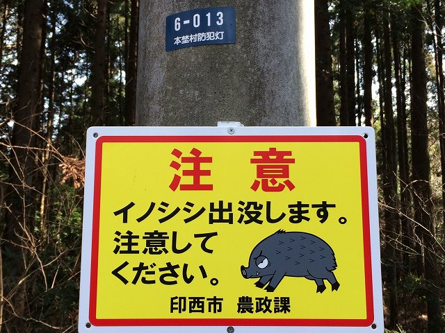 今回初めてこんな看板に気がつきました。神戸(六甲)はイノシシがうろうろしているので、看板をみますが、千葉にはいないんだと思ってましたが、いるんですねー