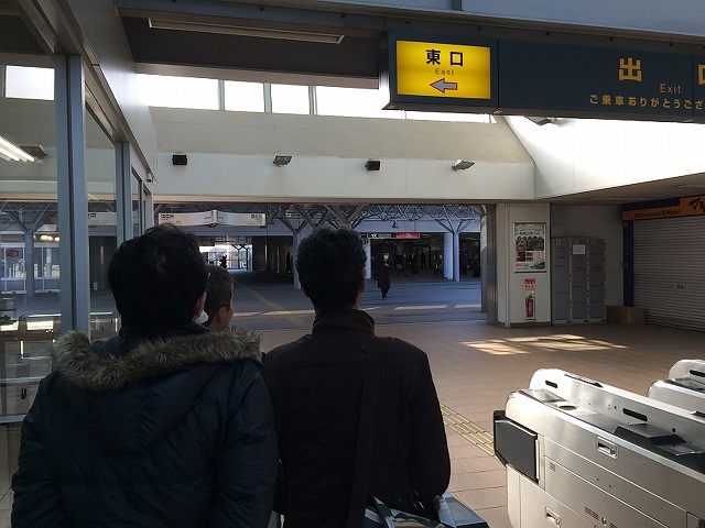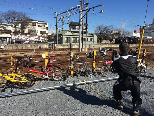 守谷駅では輪行準備を済ませ、TX経由のまっちさんを待つ間と電車で一時間程足を休めます。写真はまっちさんを待つ不安な人々(笑)。この後「きた!!」っとみんなでホームに急ぎます。無事、予定の汽車に乗れたので汽車の旅を楽しみます。のんびり他車窓を楽しみながら?いや、しゃべってるだけで到着しました。みんなSLが目的なのでSL方向へ歩いていますが、僕たちは反対側に向かって、スピさんの案内で撮影スポットへ移動!!