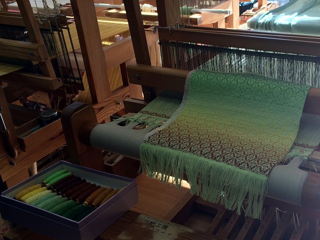 ランチスポットのすぐ目の前にある「真岡木綿会館」を見学します。真岡って綿花が栽培されていて木綿で栄えた町なのですね。千本以上の縦糸に一本の横糸を入れながら、複雑な模様を織り込んでいく事を初めて知りました。すごい技術です!!