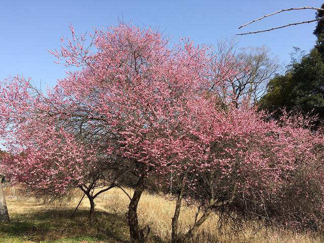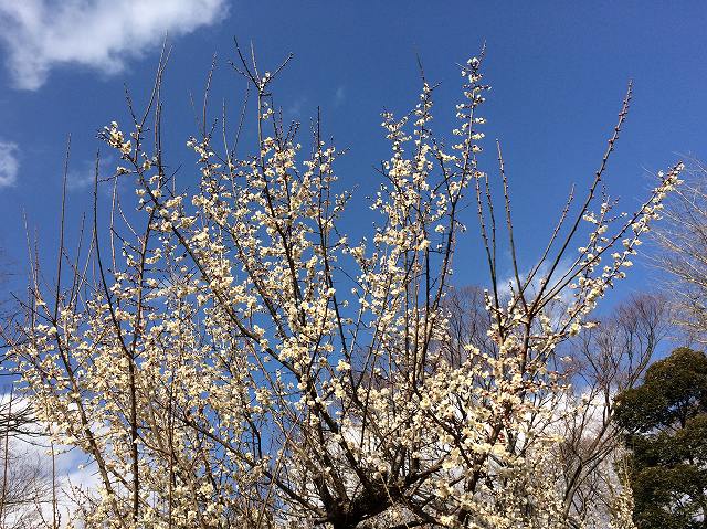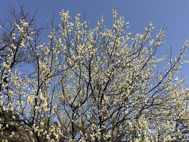 里山の途中にはお気に入りの梅があるので見に行きます。ちょうど満開でいい香り(梅ガム!)が充満しています。