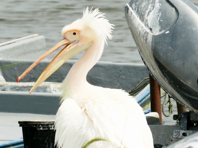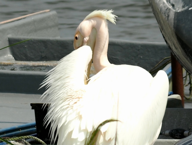 今回は居てくれました!!モモイロペリカンのカンタ君です。最初は水面に浮かんでいたので白鳥?と思いましたが、あの長いくちばしはカンタ君です。今回はBORGがあるのでちゃんと取れました。ほんとだモモイロだ!くちばし長ーい!なんだ?頭の上のヤツは?と驚きながら見ていると、、、体に顔をうずめて寝てしまいました(笑)