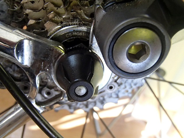 リアエンドは拭くだけで綺麗になります。メッキなのできらきら!あ!メッキだからツルツルですべることも考えられますが、ちゃんとクイックがしまっていれば大丈夫だと思います。