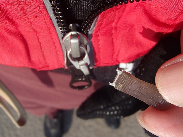 ジッパーをおろして、外そうとしたら、、、取れちゃった!手芸洋品店に部品が売っていたはずなので修理すれば大丈夫ですが、帰りに着ることはできなくなりました。(寒くなりませんように!)