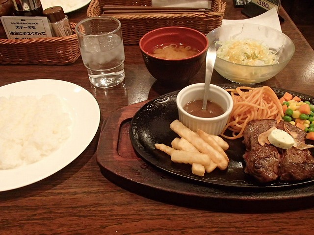 ポタのランチとしては高価すぎるということで「オムライス」にしようと思っていましたが、お肉がおいしいお店という事でランチメニューのステーキにしてしまいました。