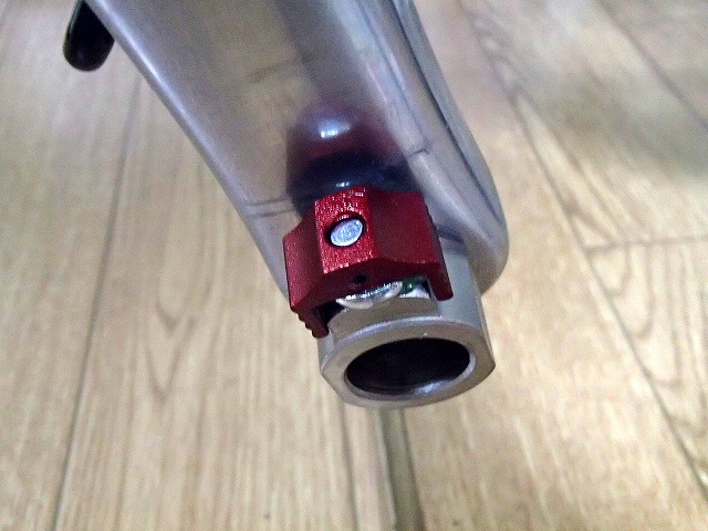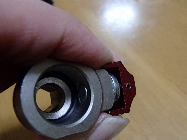 クランクにつけるパーツはクランクとの間にワッシャーを入れて赤いパーツの角度を調整します。こんな感じでクランクと同じ角度で赤いパーツがくるように薄いほうのワッシャーを使いました。(なぜか同じワッシャーを使っても反対側は横に向いてしまった、、、)