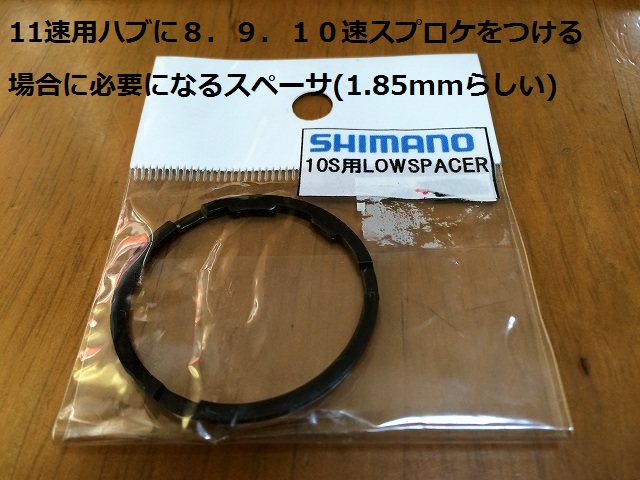 昨日の記事で「実はもう一つパーツを調達したのですが、、、それは次の記事にします。」としていたパーツについて紹介します。今回、8速を10速にするためにはコンポの変更が必要だったのですが、ホイールは変更していません。8速で利用しているホイールのハブ(フリーボディ)は8,9,10速に対応しているので使いまわせるんです。しかし、10速にする場合だけはロースペーサーというパーツが必要になります。