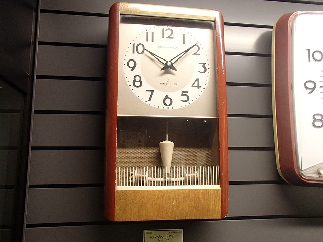 この時計は「トランジスタ時計」です。機械時計からクウォーツ時計に入るのかと思ったら「トランジスタ時計」がったんですね。この時計のデザインは実家にある時計とまったく同じで、単一電池の交換を時々やった覚えがあるのですが、、実家に帰ったら確認してみよう!!