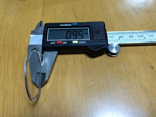 新しく購入したロースペーサは0.95mmでした(工具の精度が悪いので1.0mmなのでしょう)