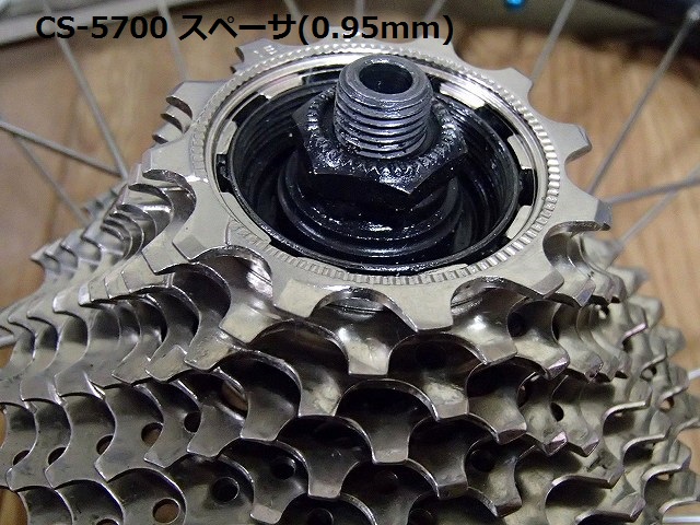 と思ったら、、ロックリングが空回りしてスプロケを固定する事ができません。ん?ちゃんと自転車屋さんで「8速ホイールに10速の105スプロケをつけるときに必要なスペーサーをください」といって購入したものなので間違いがあるはずがありません。そっか、ハブが10速に対応していない、、、そんな事はないな、、ネットで検索してみると、、、ロースペーサーは1.85mmと1.0mmがあって、今回は1.0mmが必要だという事が分かりました。