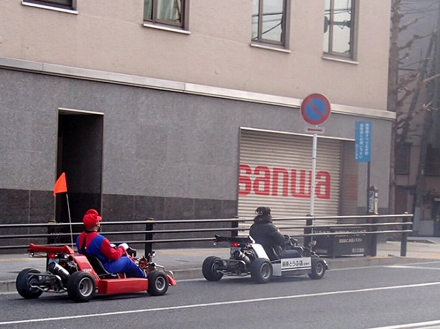帰ろうとしたときに大森ブルドックポタでも遭遇したマリオに遭遇!前回は走行中だったので写真を撮れなかったのですが、今回は徒歩移動中だったのでゲット!前のカートには「藤原とうふ店」と書いてある気がする。。