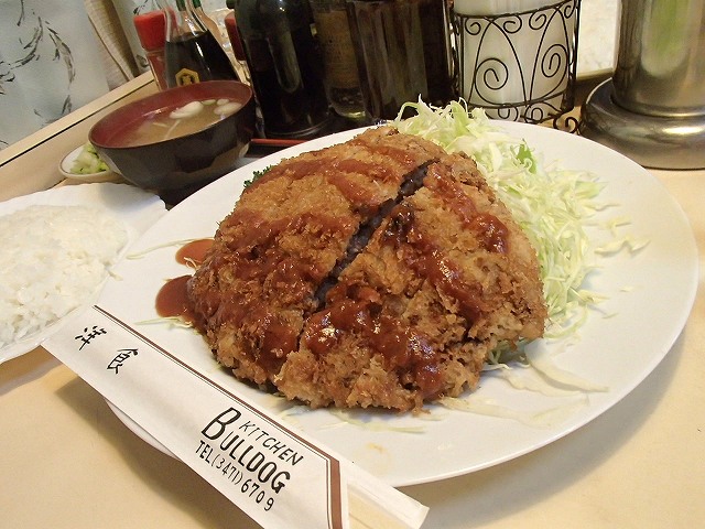 うわ!でか!これはとんかつではなくメンチカツなんです。このお店はメンチカツで有名なので、僕以外はメンチカツでした。