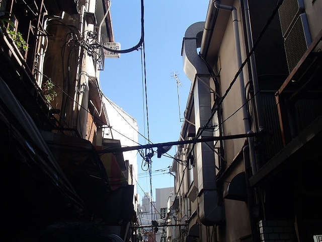 品川を越えて大森までは結構な距離がありましたが、ランチスポットには少し早めに到着しました。入った道はこんな空と建物が見える路地です。こんな路地があちらこちらにあるんですね。