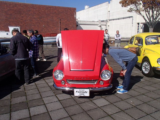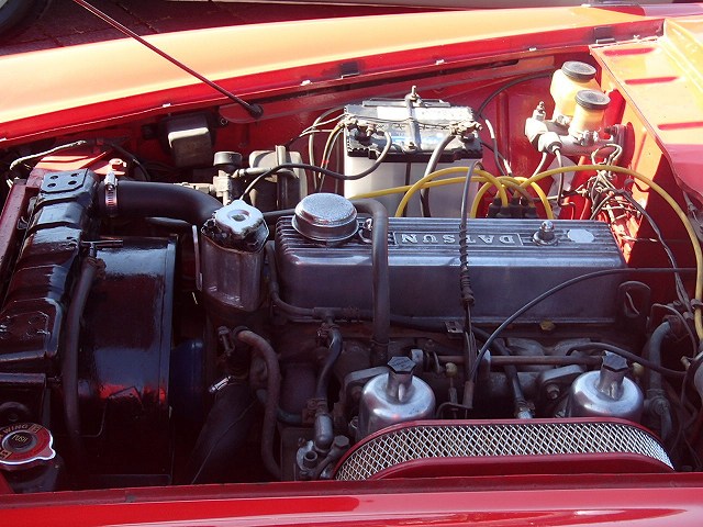 真っ赤な小さなオープンカーは憧れますよね〜「フェアレディ1600(Zじゃないんだ)」です。おじいさんになったら是非乗りたいです。エンジンルームはガラガラ、、、そうそう25年前くらい前までの車ってこうでしたよね。ガラガラスペースにいろんなパーツを付けて喜んでました(笑)。