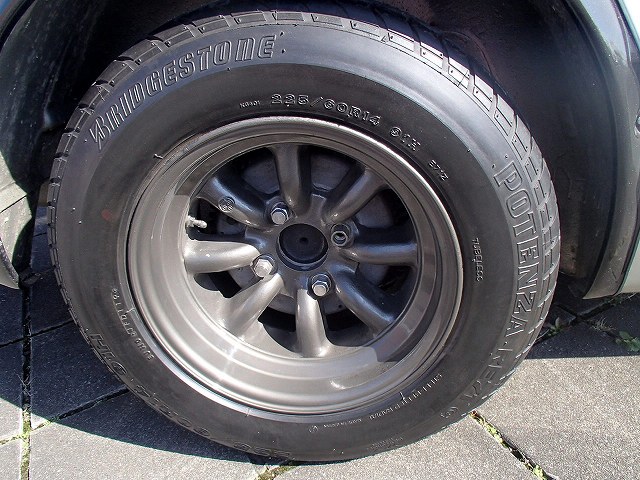 線が太かったのでブラックレーシングだと思ったのですがRSワタナベのホイールでした。でも、そこではなくてタイヤに「POTENZA RE71 G」って書いてありますね。ZCエンジンのCIVICは「ブラックレーシング+71G」を履かせていまいたので、めちゃくちゃ懐かしいです。山がかなりあったので復刻販売されたのかと検索しましたが、そうではないようですね。この扁平率60くらいのタイヤのほうがカッコイイ(と思うのはおじさんだからな?)!