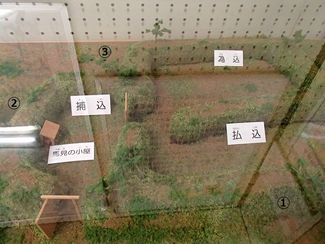 ここで驚くべき発見が!それはみなさんのブログにお任せするとして、古地図から「平林のだんご」さんをみんなで探して楽しみます(笑)展示物は八街の歴史紹介なのですが、さすがに野馬土手の話がいっぱいで結構楽しめました。「野馬捕込(のまとっこめ)」のジオラマは「八街昭和懐古」の展示物です。