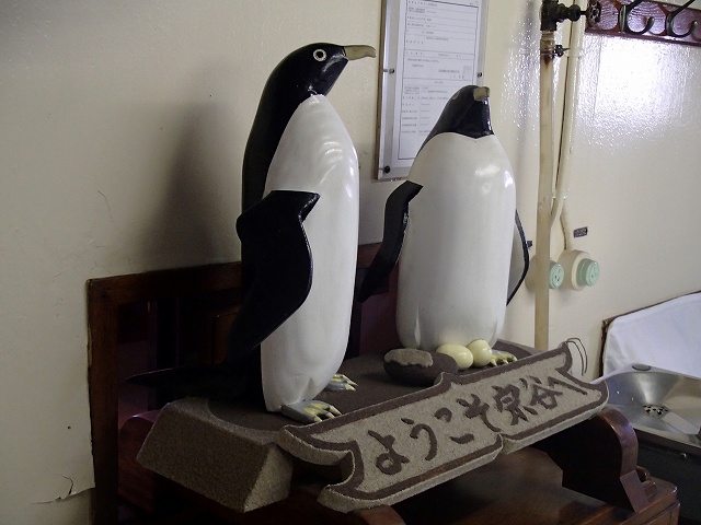 船内見学は面白かったのですが、それより動物たちが気になりました。最初は食堂のペンギンです。ようこそ!ってダレを歓迎するのかな?