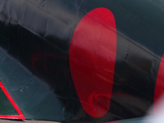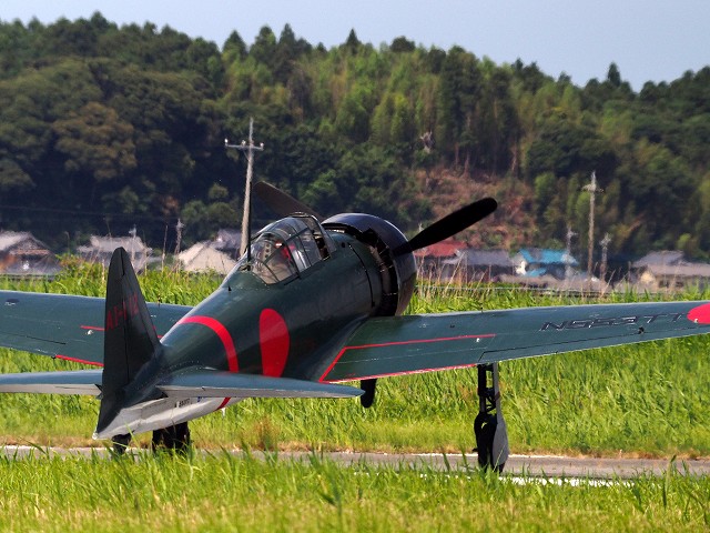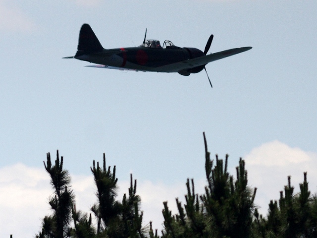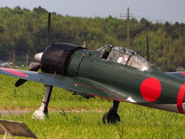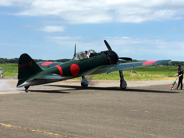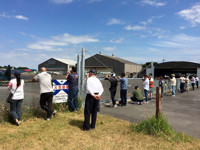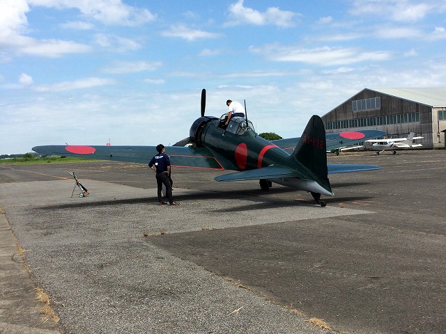 今回は到着すると結構な人がいるのですが、その向こうに何か見えますね。そうです、まだ、あの零戦が居てくれました。なんだか飛行場の中にも何名かがカメラを持って撮影しています。