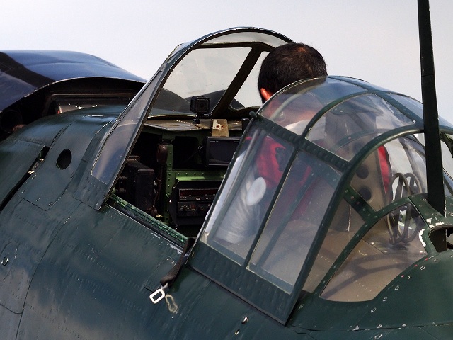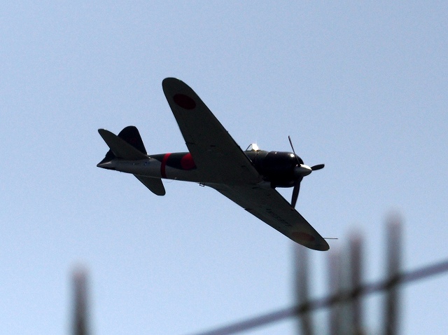 驚いたのはキャノピーが開いたままです。ゼロ戦ってキャノピー閉まらないのかな??後で知ったのですが竜ヶ崎飛行場から幕張に向かったんですね。竜ヶ崎飛行場では至近距離から見ることができ和気あいあいだったそうです。いいなぁ〜。