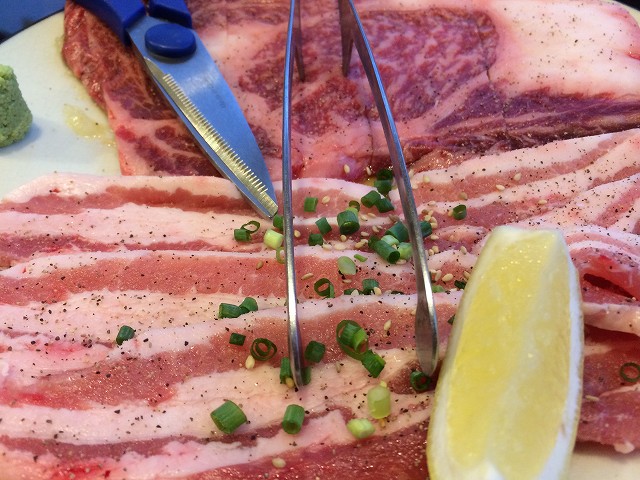 リブロース(牛ステーキ?)と豚バラ(サムギョプサルかな?)が並んでます。(これは前回の写真でーす、ホント撮ってないなー)