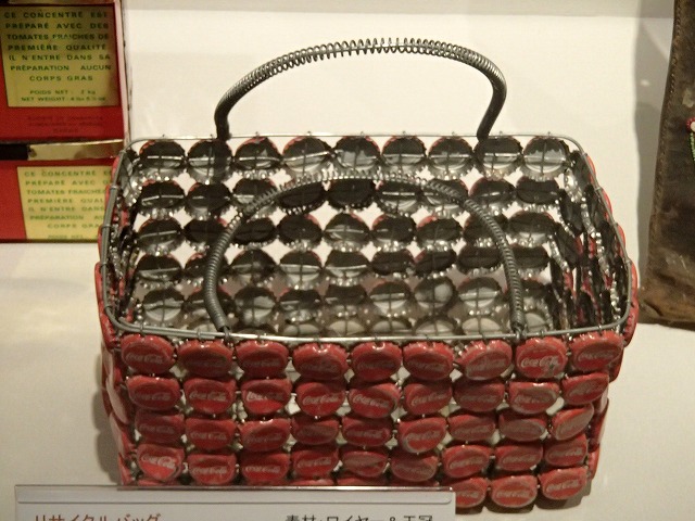 もうひとつ驚きだったのはこれです。コカコーラのキャップでできたバッグです(当然ACEではないですが、、)。技が細かくて面白かったです。