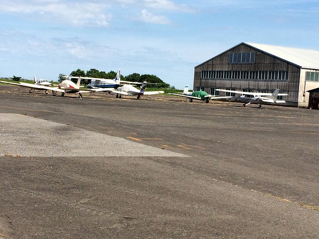 竜ヶ崎の飛行場はこんな感じで小型飛行機がならんでいます。