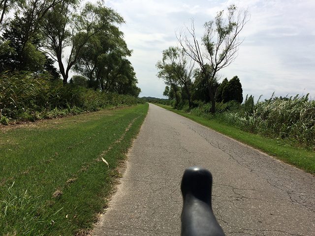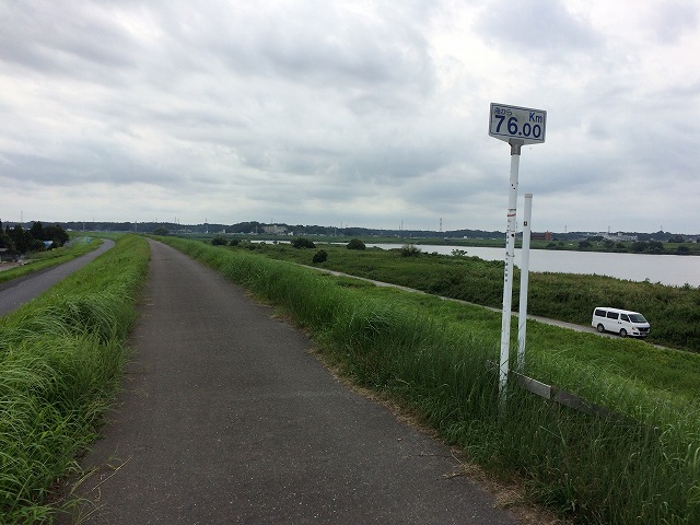 まずは、利根川CRの左岸をのんびりと走ります。風向きはチェックしていなかったのですが、向かい風ですね〜。