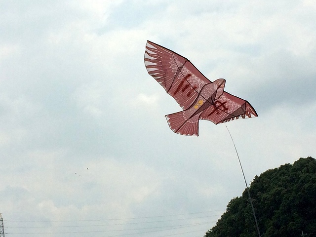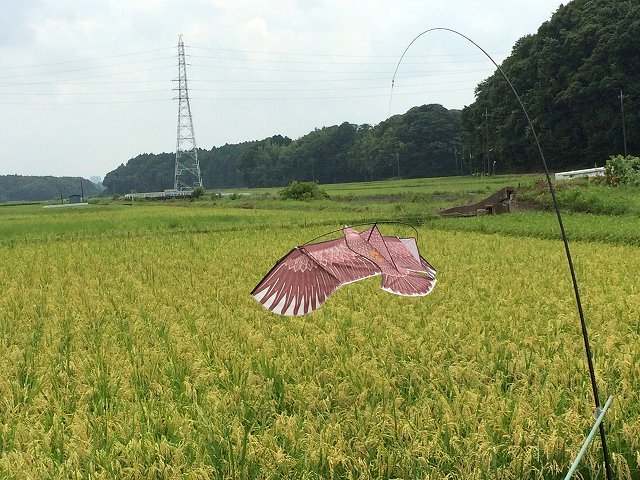 風がなくなったらぶらーん、、、、良くできた凧ですね。これ結構効果ありそうです。