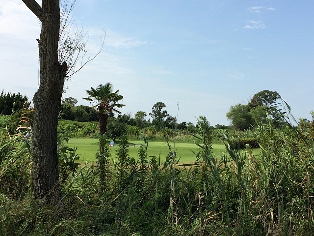 この間いった龍ヶ崎飛行場をイメージしてMAPにしたがって走りますが、河川敷に降りてもこんな感じです。ゴルフ場の敷地なのはわかっていますが、柵もない道です。
