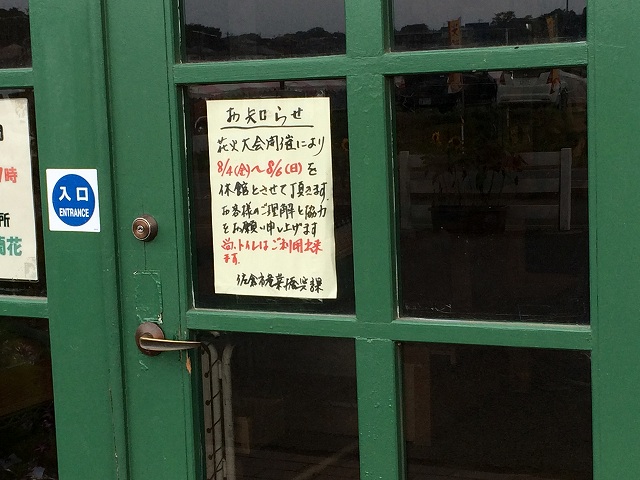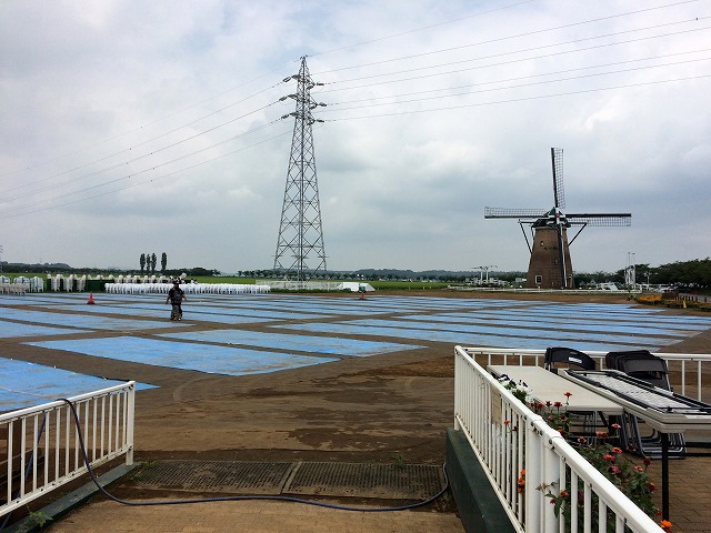 へーひまわり畑は花火大会の観覧席になるんだ!と感心していると、自転車乗りたちの動きが何か変です。ぐったりしていたり、もうーかえろー!という女性ライダーの声とか聞こえてくるので入り口に回りこむと、、え?昨日が花火大会だったの??で、今日も休み??なんで??トイレは使えるのか〜よかった!いやいやアイスは??自動販売機も売り切れだらけ、、、