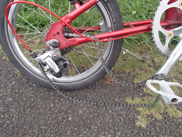 その後、シフトチェンジを繰り返していると走行中にチェーンが外れてしまいました、そういえば6速ー>7速ー>8速と変えていますが、BBは変えてないのでチェーンラインがずれているのでしょう。