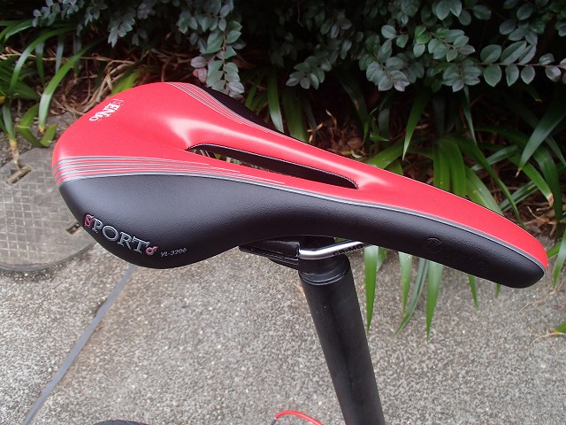 これまでのサドルはクロックスと同じ素材のものでしたが、経年劣化で穴が開き、雨が染み込んでおしりが濡れてしまうので新しいものに交換しました。今回も穴あきですが違う素材のものを付けておきました。