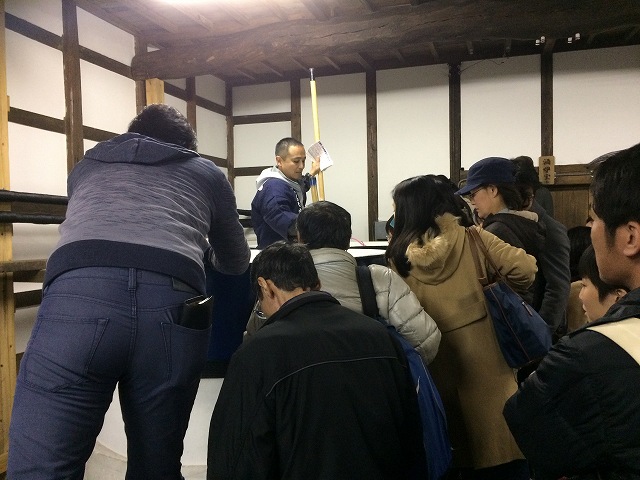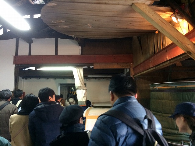 いろんなイベントをやっていて地域の方との交流が盛んな酒蔵なんですね。酔っ払ってのんびり(笑)されているみなさんの間を通って酒蔵へ、、、一番奥に入り口があって見学開始です。