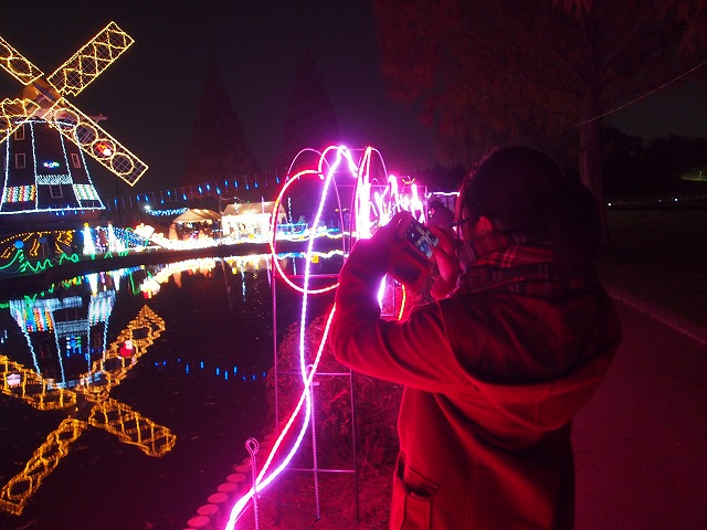 娘はスマホのインスタアプリで撮影してアップしてます。アプリすごいですね綺麗に補正されてます。風車の前が一番ライトアップされていて綺麗ですね。このあたりは動物園状態です。いっぱい取りましたが、気に入ったのはこの3体です。
