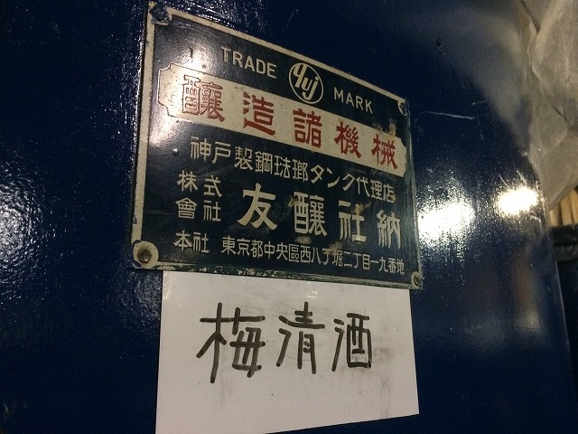 すっかり田中酒造さんを気に入ったので、お土産を買ってしまいました。田中酒造さんで購入予定だったのは「梅清酒をつくるときに使った梅」だったのですが、大人気で午前中に売り切れたとの事で今回は買うことができませんでした。こっちのタンクは神戸製鋼なんですね。